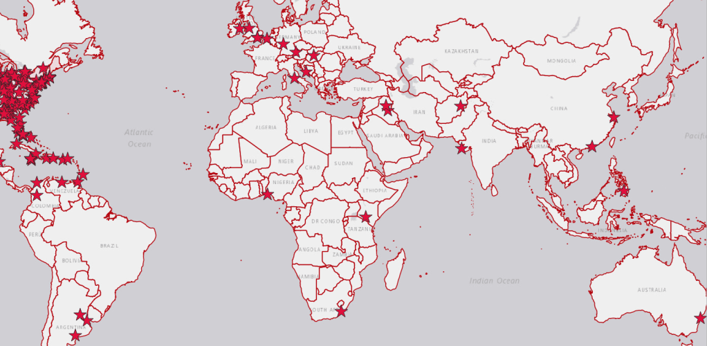 Geographically a total of 36 states, two US Territories, the District of Columbia, and 30 countries are represented.