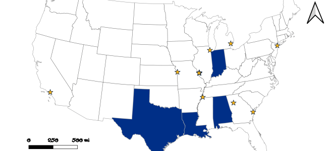 States: Texas, Indiana, Alabama, Louisiana.