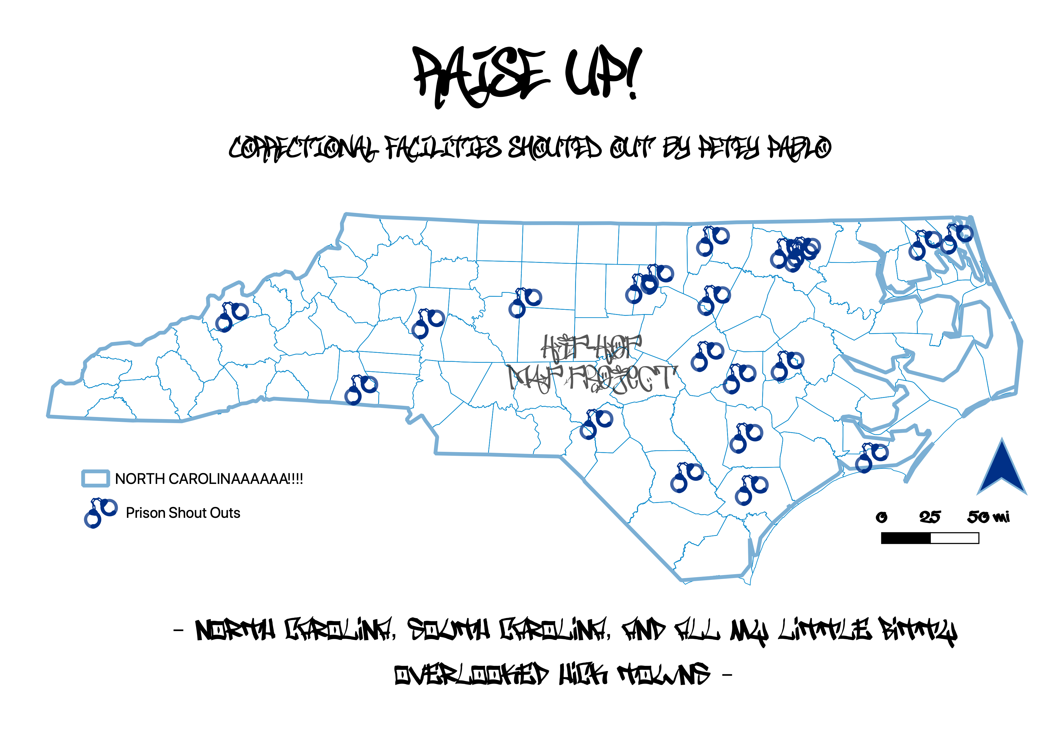 The song is not just an ode to his home state, Petey Pablo is also giving a special shout out to those locked up in North Carolina’s correctional facilities. According to Genius.com, all of the places mentioned in the song are references to state’s prisons and jails. He mentions his past behind bars and shouts out those serving life sentences in prison in the lyrics. A total of 21 places are given shout-outs: although some correspond to a county or city, all are associated with correctional institutions.